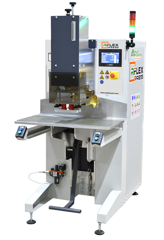 Das RFlex Press Schweißgerät ist die kleinste Maschine der Hochfrequenzlinie. Die RFlex Press ist klein, aber fein und bietet die Leistung größerer HF-Maschinen bei geringer Stellfläche. Sie wurde für die Produktion kleinerer, komplizierter Anwendungen entwickelt, wie z. B. für die Automobilindustrie, medizinische Geräte und Verpackungszubehör oder -produkte. Die RFlex Press kann PVC, PET, PU, TPO oder PLA schweißen. Mit erweiterten Funktionen wie Präzisionslinien-, Punkt- und Kurvenschweißtechnik, Autotuning für gleichmäßige Schweißnähte und einem robusten Arbeitstisch wird Ihre Produktion effizienter und zuverlässiger. Oder fügen Sie den Schwanenhals-Arbeitsbereich hinzu, um die Materialhandhabung und die Flexibilität bei Ihren Bewegungen zu verbessern.