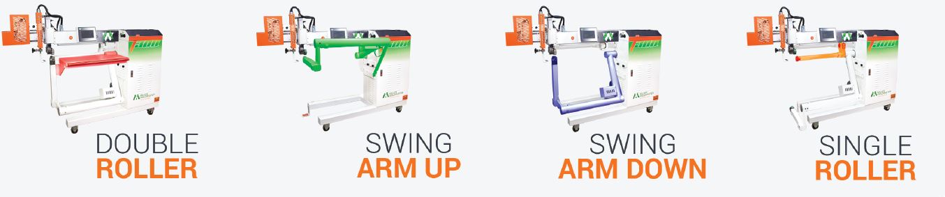 Flexible Schweißmaschine mit 4 Armpositionen (Freiarm, Flachbett, Säule und Armabwärts), intuitivem, symbolgesteuertem Softwarepaket, mit farbigem 7-Zoll-Touchscreen mit Rezeptverwaltung (18 aktive Nahtarten). Drei synchronisierte, digital gesteuerte Motoren für eine präzise Schweißkopfposition.